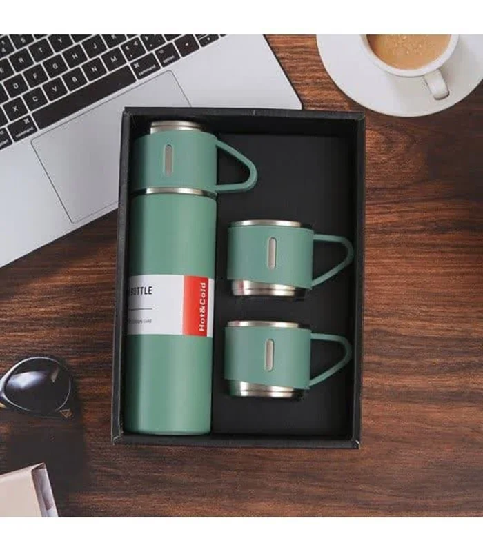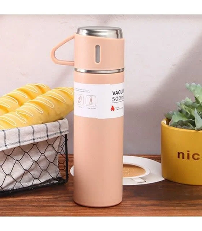 فلاسک نیم لیتری با ماندگاری دما به مدت 12 ساعت.داری سه فنجان.مناسب برای داخل کیف،کوله پشتی.