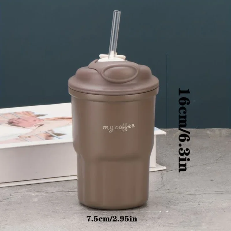 استیل 316/دارای دو درب مجزا، آسان نوش و نی دار/بدون هیچگونه نشتی/نگهداری طولانی مدت دما/حجم 450 میلی لیتر