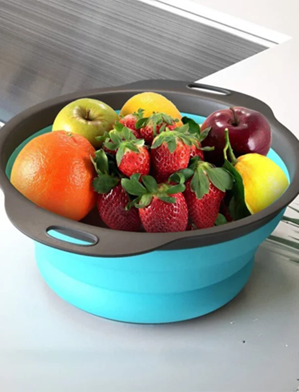 آبکش سیلیکونی تاشو به علت کم جا و خوش دست بودن بسیار مناسب برای آشپزخانه و به خصوص هنگام سفر است. جنس سلیکون داخل آبکش مقاوم به حرارت بوده در نتیجه برای آبکش کردن برنج و ماکارونی مناسب می باشد.مناسب جهت شستشو همه مدل میوه و صیفی جات و سبزی جات./ارسال رنگ به صورت رندوم
